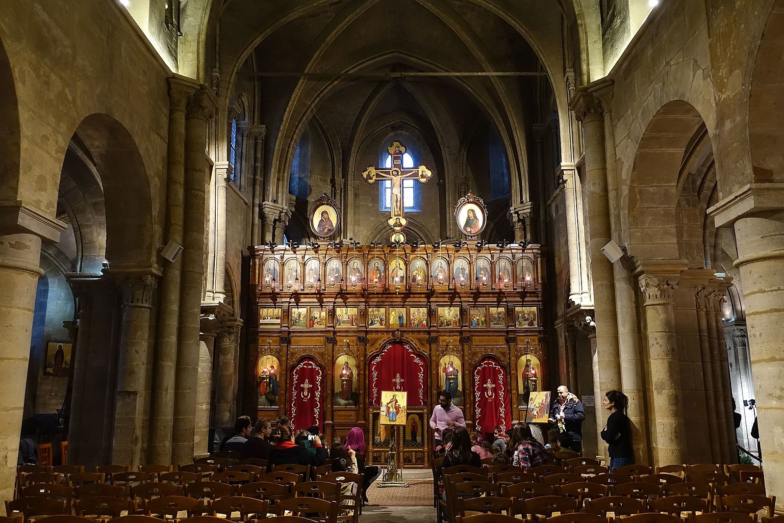 What’s really interesting about this church is that it’s of the Melkite Greek rite. I’ve never gone to a church that was not Roman Rite or even, before this trip, seen a non-Roman Rite Catholic church. The Melkite Greek Catholic Church is an Eastern Catholic Church that is in full communion with the Holy See. However, most of the Catholic churches in the world, including Paris, are Latin rite. According to EWTN, a rite is “represents an ecclesiastical, or church, tradition about how the sacraments are to be celebrated.” NewAdvent/The Catholic Encyclopedia says that rites are “different expressions of the same fundamental truths” with the same “essential elements.” The web pages hyperlinked give a list of rites of the Catholic church and go more in-depth.  According to this church’s website, during the 19th century, many of the immigrants to Paris from the Egypt and the Ottoman Empire in the 19th century were Greek Catholics, who obtained permission on July 13th, 1886 to open a place for their rite to worship. Then, in 1888, they were allowed to rent the church of Saint-Julien-le-Pauvre, though it had to be restored, and was inaugurated on Sunday, May 5, 1889.