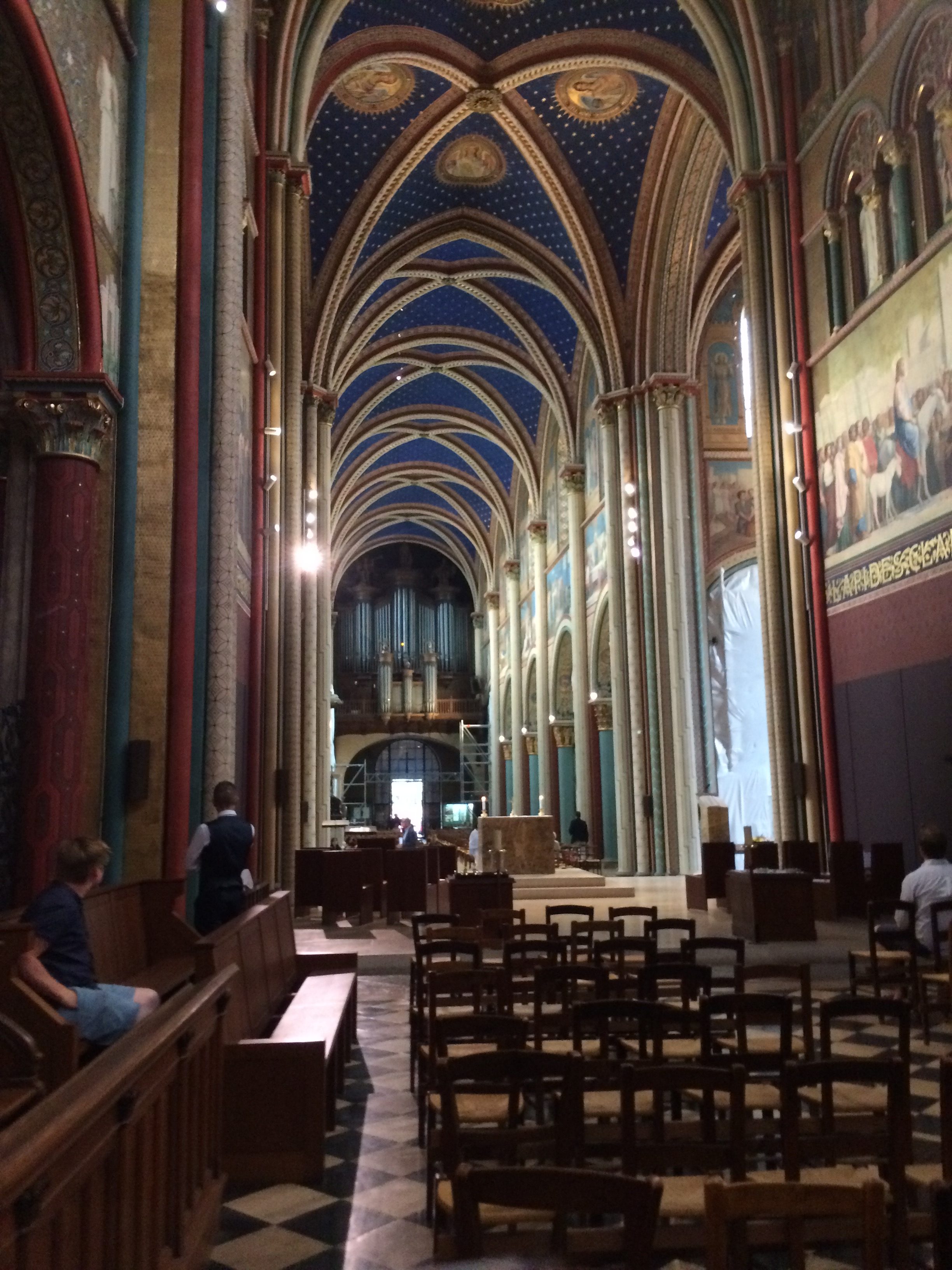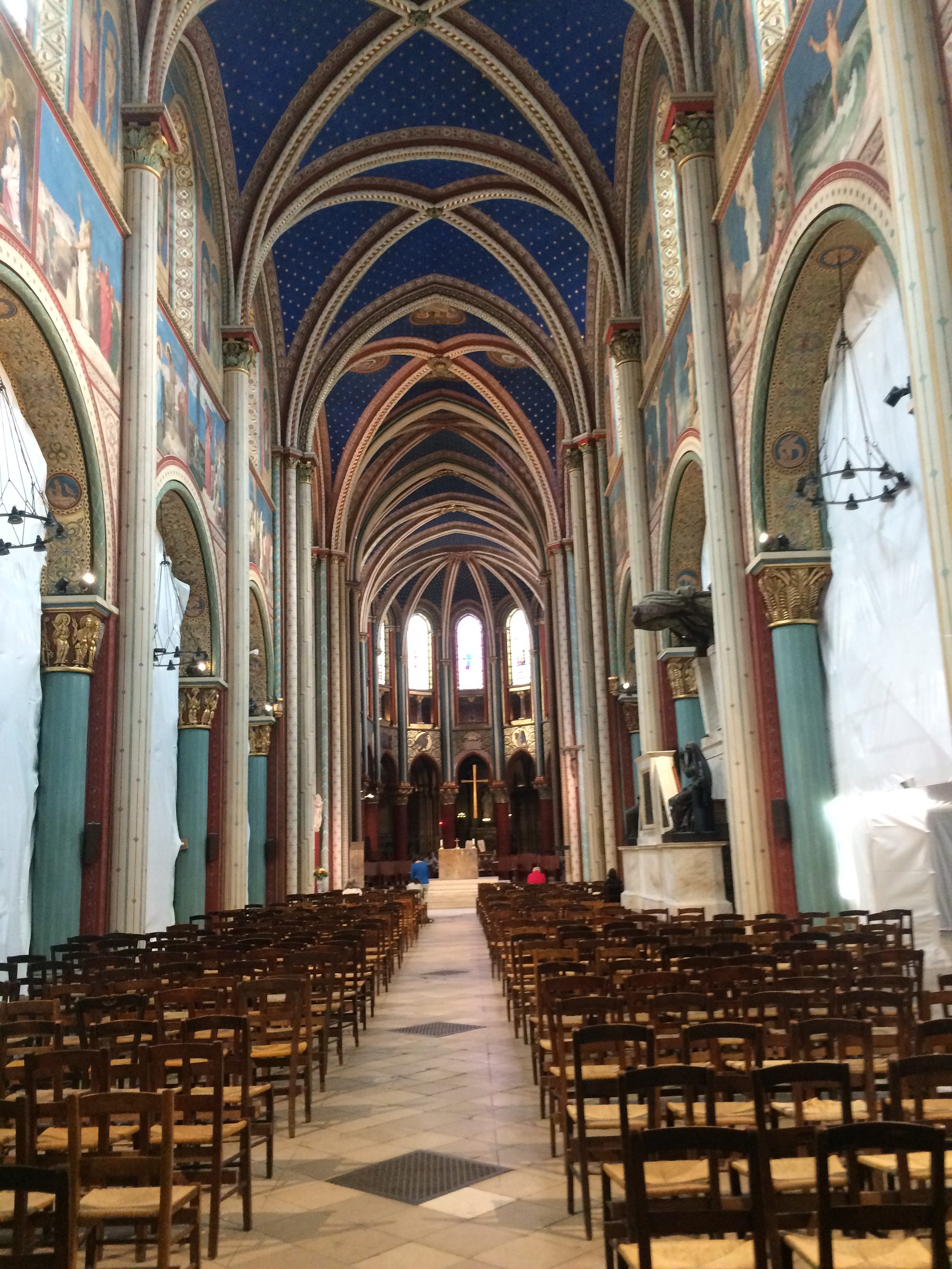 The church was restored, due to the impact of the Revolution, from 1821 and 1854. Currently, the church is going through another period of restoration. According to its website specifically about the restoration, restorations are occurring throughout the whole church, starting with the choir and lantern, then transept, nave, aisles, baptismal font, ambulatory, and finally axial chapel. The restorations started in 2016 and are supposed to be finished in 2020. It appears, from being in the church, that currently, the aisles are being worked on. It looks like they may be a little bit behind on their schedule. If you wish, you can go on the website and donate.